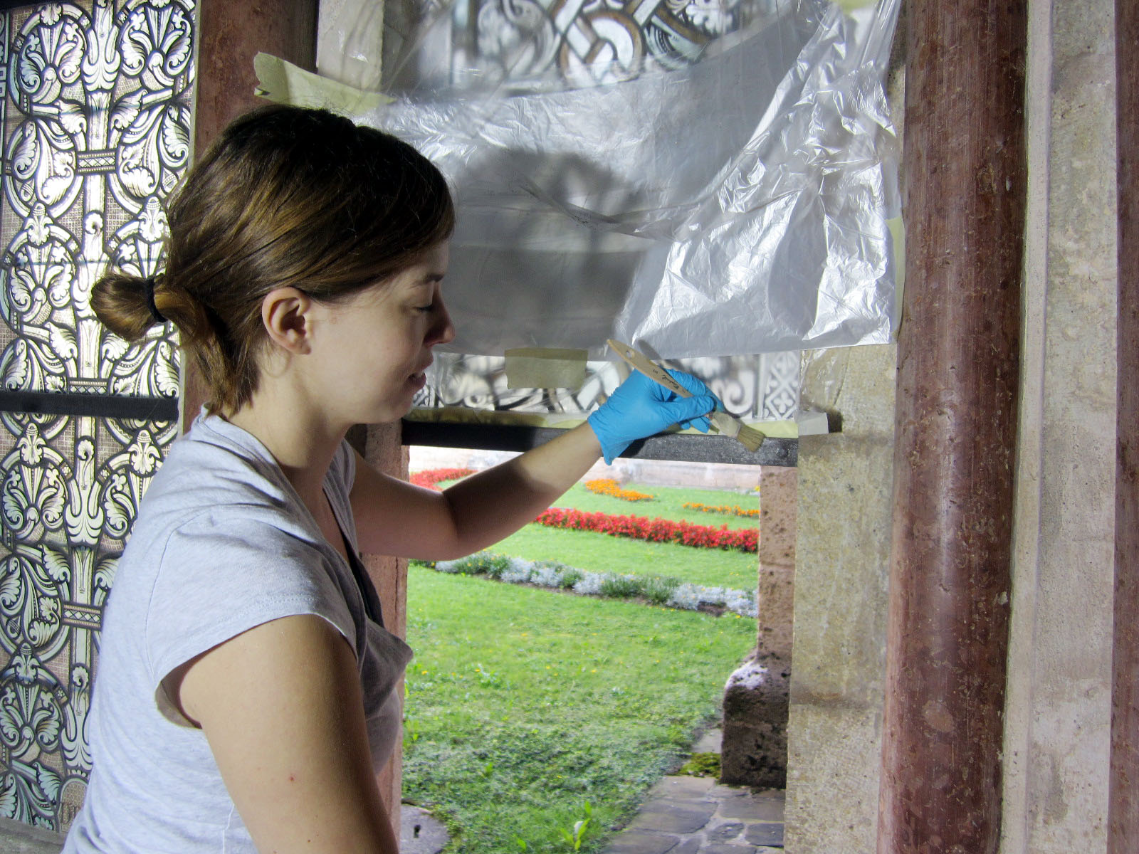 Die Glasmalereien im Kreuzgang des Stiftes Heiligenkreuz wurden durch Restauratorin Frau Mag. Angela Vorhofer untersucht, eine Bestandsklärung vorgenommen und Anhand einer Musterrestaurierung der Glasmalereien um 1900 in den ursprünglichen Zustand versetzt. Angela Vorhofer hat mit dieser Arbeit Ihr Diplomstudium an der Universität für angewandte Kunst Wien – Institut für Konservierung und Restaurierung – abgeschlossen. Die Arbeiten an den historischen Gläsern im Kreuzgang werden im Jahr 2020 fortgesetzt.